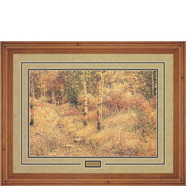 Mat: Buckskin/Open V-Groove/Plaque Over Chaps Frame: 2 1/2" Honey Pine