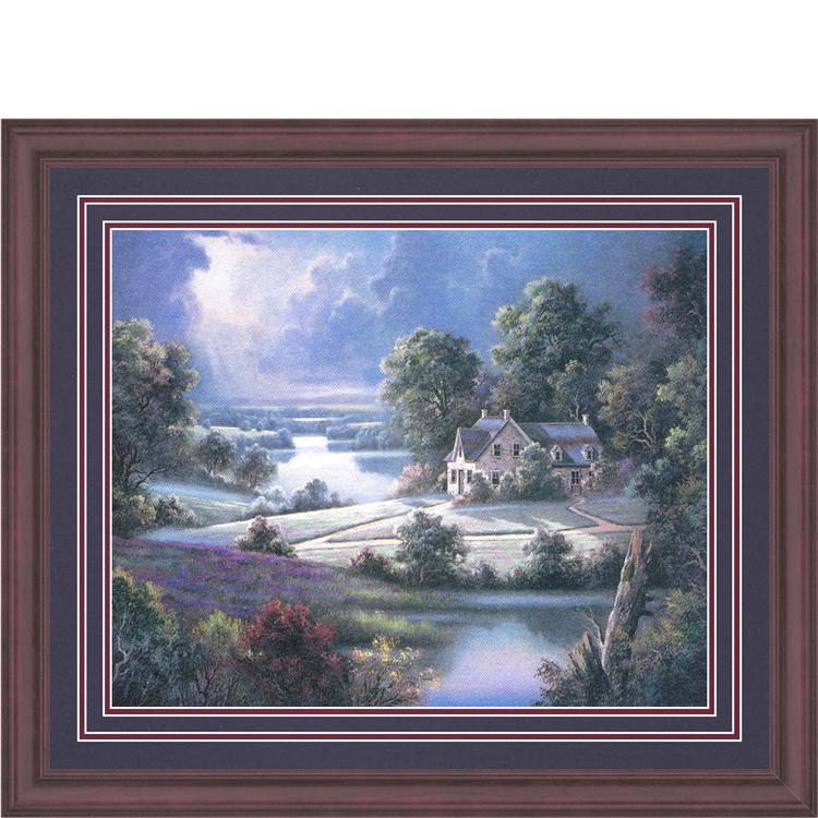 Mat: Navy/Open V-Groove Over Maroon Frame: 2 7/16" Oak - Cherry Finish.