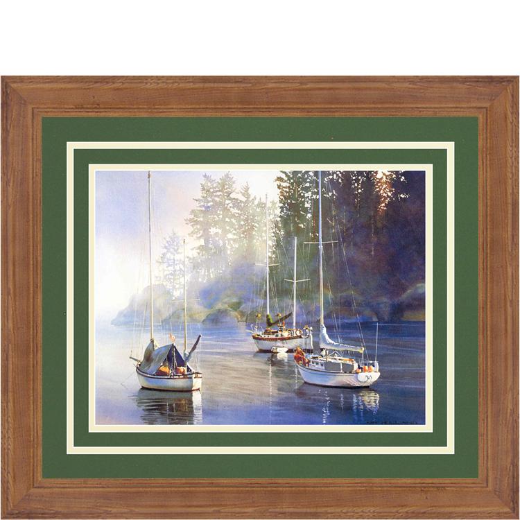 Mat: Polo Green/Open V-Groove Over Sea Shell Frame: 2 7/16" Oak - Dark Oak Finish.