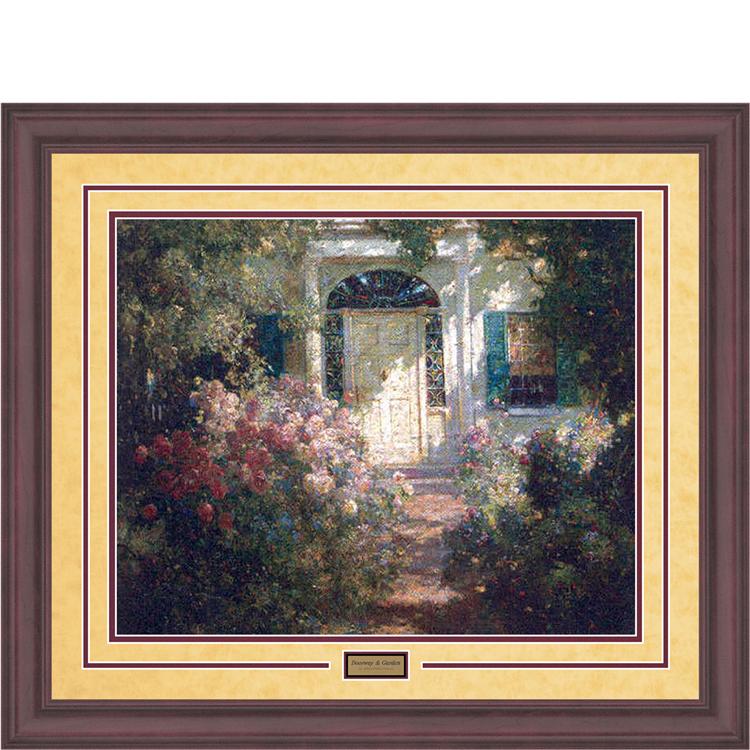 Mat: Parchment/Open V-Groovew//Plaque Over Maroon Frame: 2 7/16" Oak - Cherry Finish.