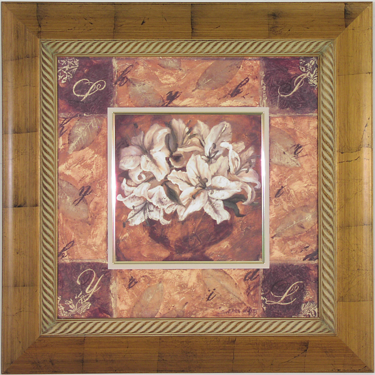 Mat: Flowing Art Over Khaki Frame: 3 3/4" Gold W/Rope