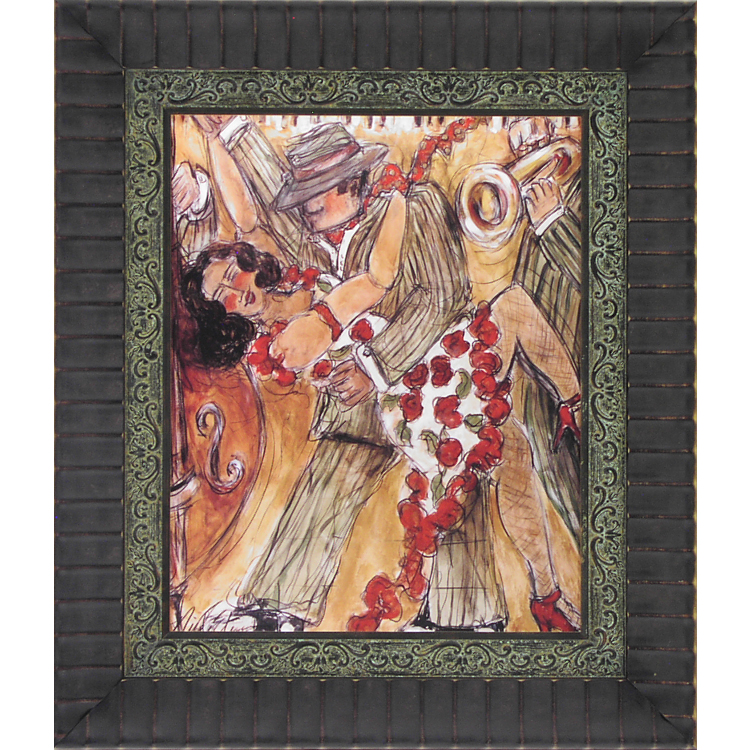 Frame: 2 3/4" Ribbed Black Over 2" Green Gold Antique W/S