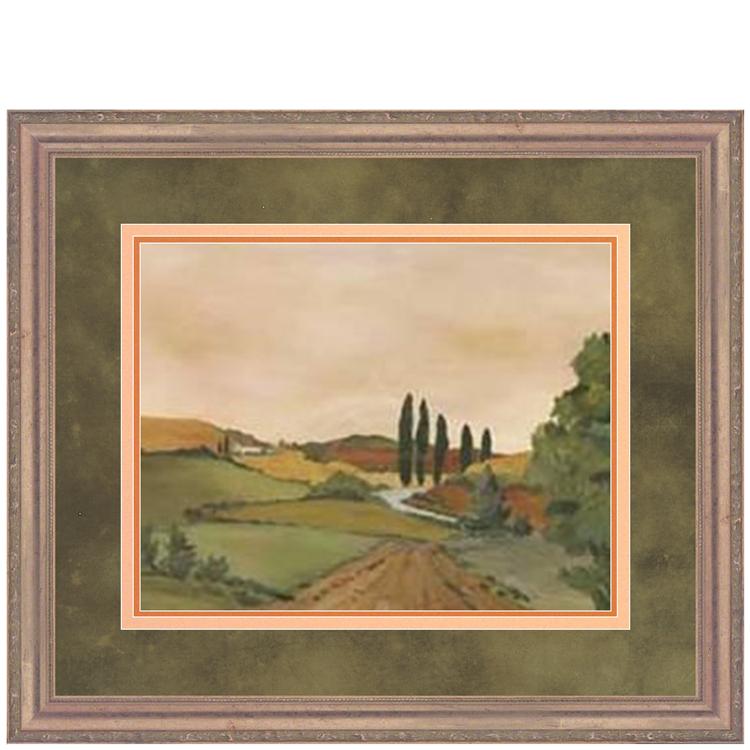 Mat: Orchard Over Desert Island Over Burnt Topaz Frame: 2" Silver Flwer/Bead
