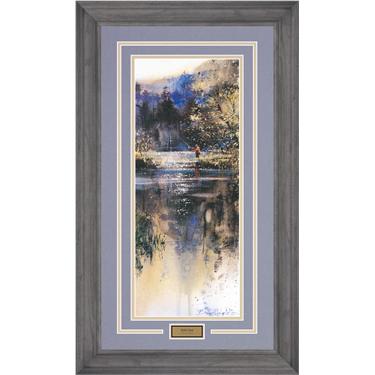 Mat: Hemmingway Blue/Open V-Groove/Plaque Over Oyster Frame: 2 5/8" Flat Knotty Alder - Golden Oak Antique Brown Finish.