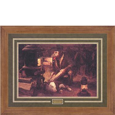 Mat: New Stetson/Open V-Groove/Plaque Over Chaps Frame: 2 7/16" Oak - Mahogany Antique Black Finish.