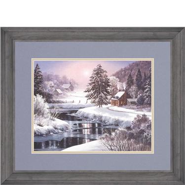 Mat: Blue Night/Open V-Groove/Plaque Over Colonial White Frame: 2 7/16" Oak - Dark Oak Finish.